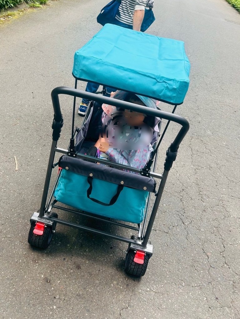 ベビーカーに見えるけど、キャリーワゴンですよって心の中で嬉しさも感じる。