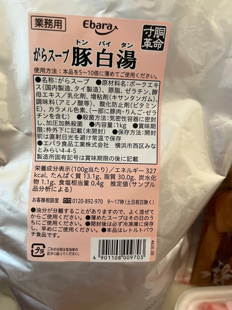 このエバラ豚骨は、業務用で濃さも変えられるし、塩醤油入ってないので、